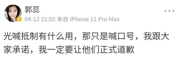 “我跟大家承诺,我一定要让他们正式道歉。”她在微博中写道。