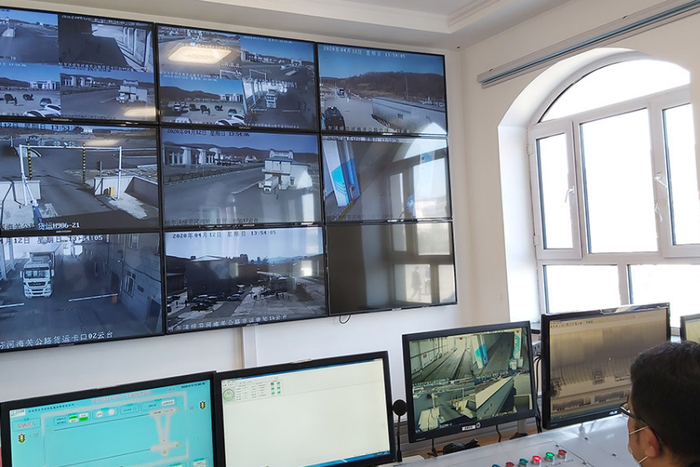 4月12日,绥芬河公路口岸海关视频车辆检查室。