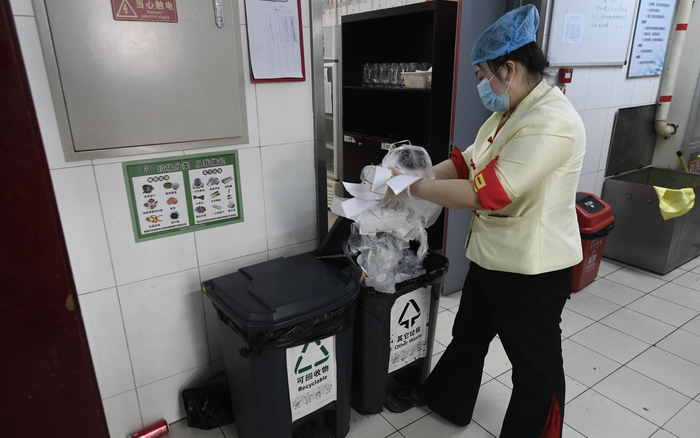 4月14日,新京报记者走访部分餐厅了解到,除了不主动提供一次性餐具、单独收集厨余垃圾,还有商家试点厨余垃圾处理后再回收。