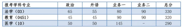 其中面向西藏地区“公共管理人才培养计划”专项,要求考生总分不低于145 分。面向新疆喀什地区医学硕士专项,要求考生总分不低于 238 分。