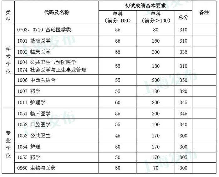 二、初试成绩基本要求(医学类)