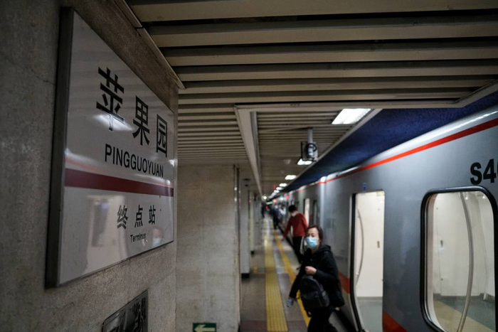 北京地铁苹果园站封站后,自东向西方向行驶的地铁列车将在古城站“清客”。新京报记者 裴剑飞 摄