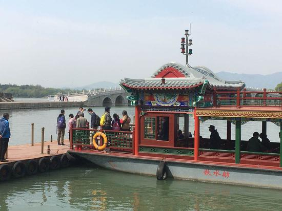 颐和园率先开通玉澜堂小船码头和铜牛到石丈亭的大船航线,五一前后将陆续开通其他3个码头和6条航线,画舫和摆渡船按照乘客量不超过载客量的50%限流乘坐,游客分散、错位就座,有安全员现场疏导。