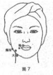 按揉迎香、巨髎、颧髎等穴位,再以三指由下向上按压5秒钟,3次。