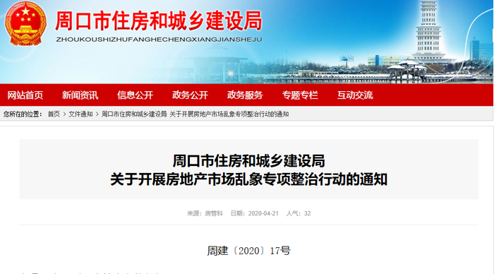 《周口市住房和城乡建设局关于开展房地产市场乱象专项整治行动的通知》原文如下: