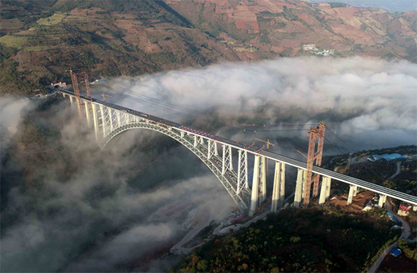 中铁十八局集团二公司承建的世界跨度最大铁路拱桥——大瑞铁路怒江特大桥。