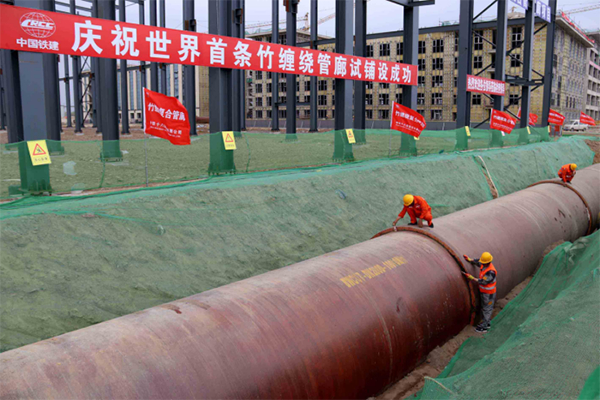世界首条竹缠绕城市综合管廊在中铁十八局集团市政公司、环科公司参建的呼和浩特市元亨石墨产业园铺设成功。
