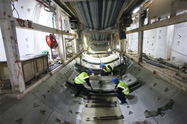 中铁十八局集团一公司厦门地铁4号线技术人员在检修盾构机。