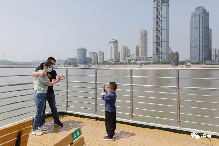 △ 4月17日,“江城1号”,乘客拍摄江景。