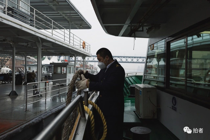 复航当天,兴奋的饶伟特地擦干净鞋,天还没亮就到码头与船员汇合,提前启动船机,仔细检查油路、水路,多次消杀船舱……保证渡轮可以准时迎接复航后首班乘客。