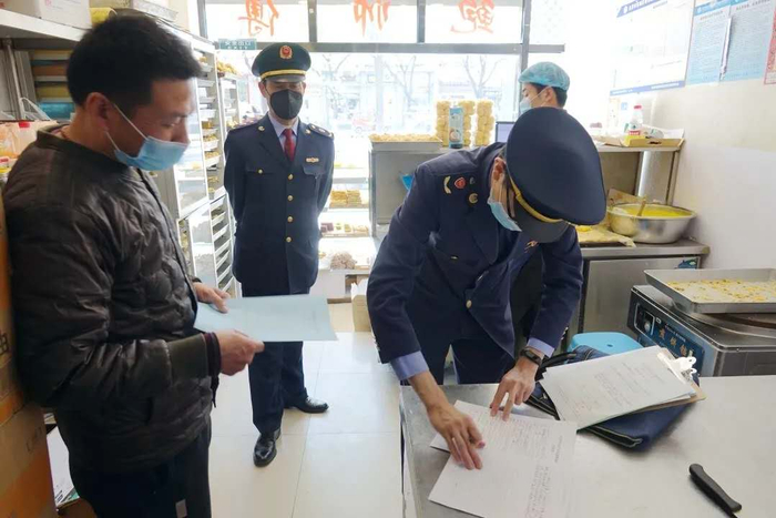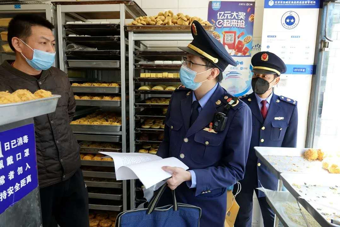 东城区市场监管局对位于鼓楼和簋街的两家山寨“鲍师傅”糕点店进行了查处。东城区市场监管局供图