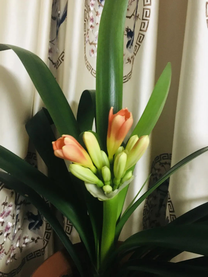中国的君子兰,品格坚韧,能在不同的环境中生存;中国的君子兰,姿容高雅,盛开时芳华熠熠。经过寒冬,春暖花开,家中君子从蓓蕾初绽、到含苞待放、再到花团锦簇,每一天的变化让人惊喜万分。意外的是,竟开出了两箭,双姝斗艳,实属少见。一直满怀期许,希望疫情尽快平定,国泰民安,繁荣昌盛!