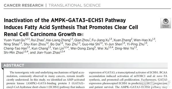 复旦大学生命科学学院研究员赵健元团队、附属妇产科医院教授赵世民团队和附属肿瘤医院教授叶定伟团队合作阐明了透明肾细胞癌中脂质累积的原因及其致癌的分子机制。2020年1月15日,研究成果在线发表于Cancer Research。