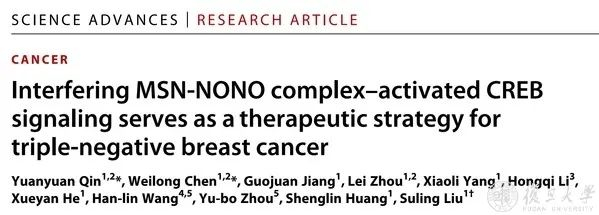 近日,《科学》(Science)子刊《科学进展》(Science Advances)杂志在线发表了复旦大学生物医学研究院院/复旦大学附属肿瘤医院柳素玲团队最新研究论文。该论文揭示了三阴性乳腺癌特异性高表达的MSN可以通过与核蛋白NONO相互作用促进激酶PKCζ的核定位,从而磷酸化CREB并激活了其下游信号通路,为基于MSN和下游信号通路开发新的针对三阴性乳腺癌的治疗方法提供了有力证据。