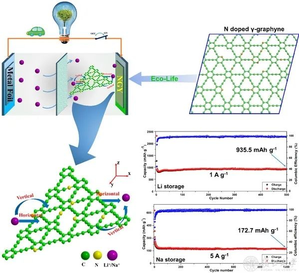 复旦大学材料科学系教授崔晓莉和光科学与工程系教授王松有合作在高比容量碱金属二次电池材料研究取得重要进展。3月3日,相关研究成果发表在国际学术期刊Small上。崔晓莉课题组、王松有课题组从实验和理论上研究了一类新型高比容量碱金属二次电池材料——氮掺杂石墨单炔。实验证明,氮掺杂γ-石墨单炔表现出优异的储锂和储钠容量以及高倍率性能,并从理论上解释了锂(或钠)的充放电机制。