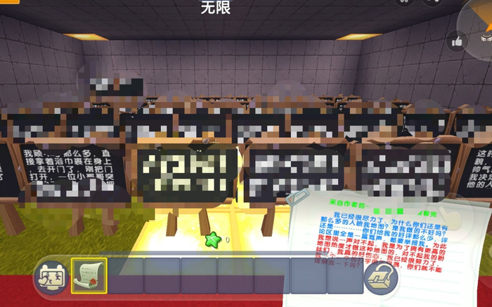 4月24日,《迷你世界》游戏的一张地图里,排列的“留言板”记录着大量涉黄内容。