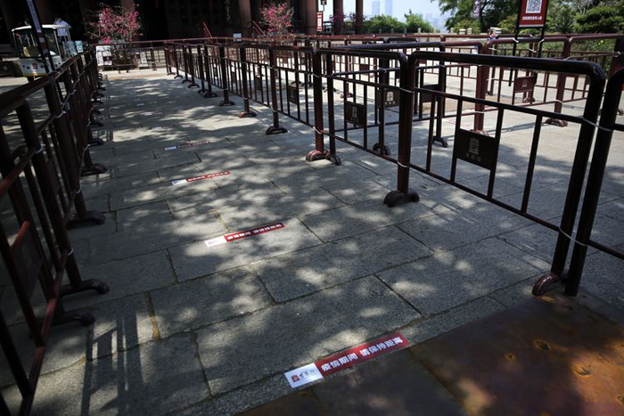 黄鹤楼主楼外已安装好排队隔离栏。