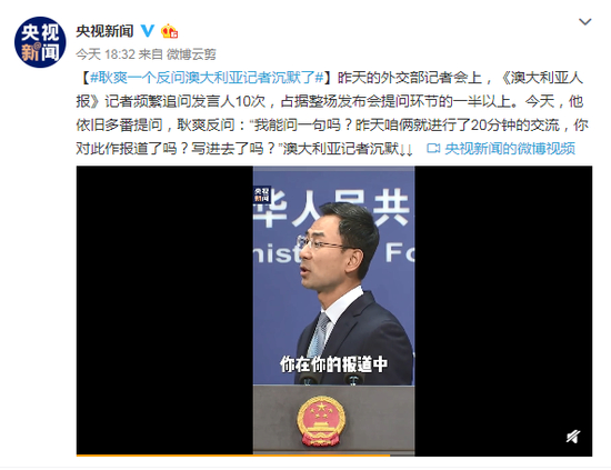 原标题:耿爽一个反问澳大利亚记者沉默了