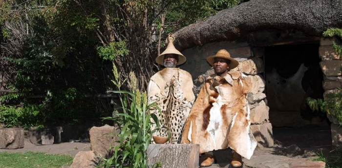 巴索托民俗村坐落于金门高地国家公园内,当游客来到这里,警卫会奏响音乐,通知热情的村民们前来迎接。村民们人人拥有一双巧手,会用传统技艺制成极具民族风情的陶器珠饰、草帽织品。手艺人还在村里开设了手工艺作坊,草篮、草袋、席垫等编织物将巴索托部族传统编织技艺发挥得淋漓尽致。在众多手工艺品中,人气最高的是一种用当地植物Moseha编织的锥形草帽MOKOROTLO。在巴索托人眼中,这种草帽不仅是一种文化象征,也是重要的护身符。