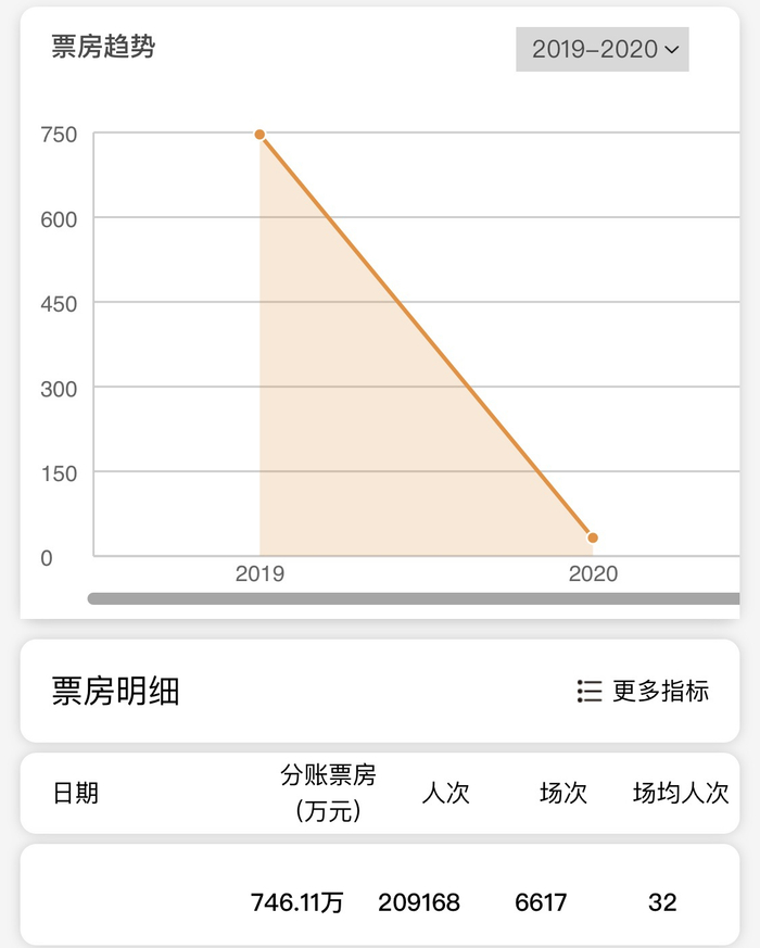 截至2019年底,全国有票房产出的汽车影院共28家,仅占全国影院数量的0.24%。汽车影院的票房收入也不甚理想,据统计2019年,枫花园汽车影院年票房为746.11万元(数据来源:拓普数据),而其余汽车影院年票房产出均不足40万元,甚至有23家汽车影院年票房收入不足10万元。而2019年全国电影票房达到了642.66亿元,排名第一的北京耀莱成龙影城(五棵松店)单店年票房达到了7949万元。