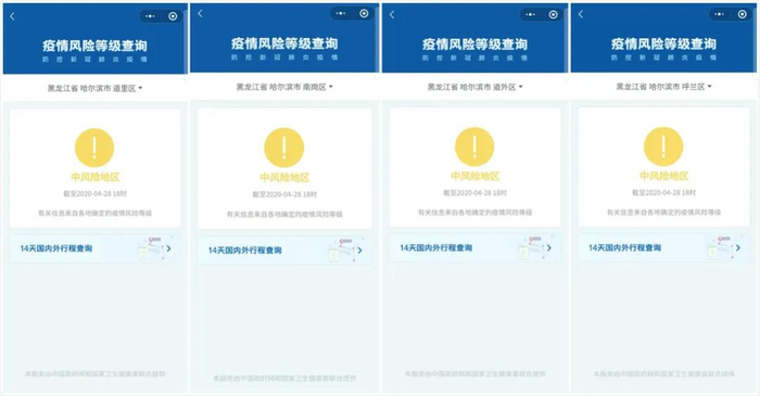 通过国务院客户端查询,截至4月28日18时,全国31省份中,除了黑龙江、辽宁和北京,其他省份全区域均为低风险。