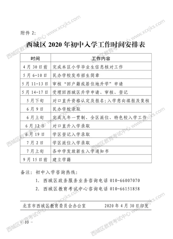 此外,文件中明确,非本市户籍的适龄儿童(出生日期为2013年9月1日至2014年8月31日),父母或其他法定监护人在西城区工作并居住,因户籍地无人监护,需要在西城区接受义务教育的,父母或其他法定监护人均应提供在京务工就业证明、在西城区实际住所居住证明、全家户口簿、西城区的北京市居住证等相关材料,按审核程序办理相关手续。