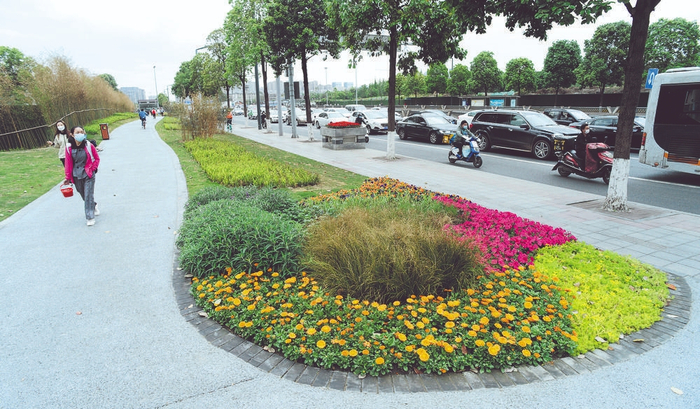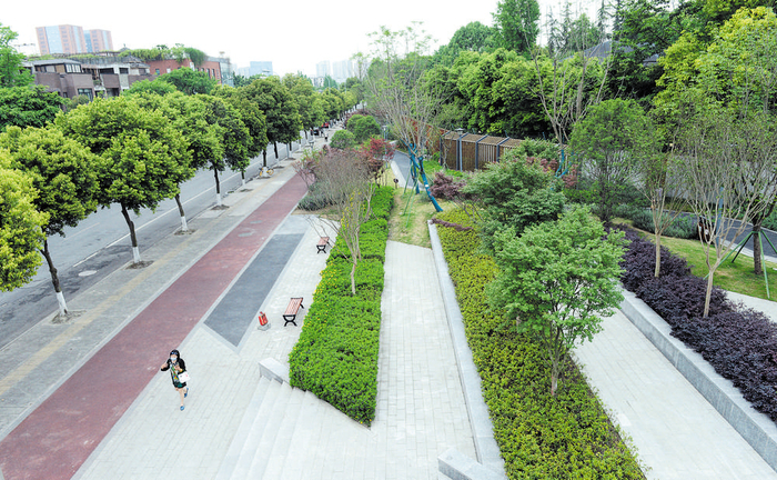 远处,憨态可掬的熊猫雕塑被点缀在高低错落、葱郁精致的植被花卉中,一位大爷正满脸笑容地拍下这一美景——从第31届世界大学生夏季运动会赛事沿线区域之一的剑南大道一路向南,在与天府一街的交叉路口,这是被命名为“勤勉园”的一处小游园,其间蜿蜒的步道成为周围白领、学生们每日必经的“回家的路”。“原来这里是被围起来的,路过要绕很大一圈。现在打通成为小游园了,环境变好不说,我们上下班也更方便了。”正路过这里的杨女士对记者说。