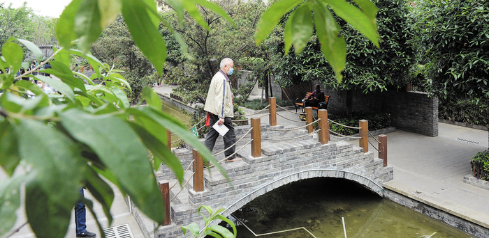 小桥流水、捕鱼捉虾,你以为这些乐趣要专门到公园或是郊外才能收获吗?那可不一定,因为它们就出现在了武侯区七道堰社区居民的家门口。“过去这边确实很老旧了,除了能过路,就没啥其他作用。但是现在,你看绿化好巴适,前面还有健身区,我和家人几乎每天都会来这里散步走走。”俞先生是附近的居民,说起七道堰前后的“两张面孔”,他感受颇深。的确,目之所及,这里有小水池,有拱桥,有亭子,有小孩拿着渔网在捉小鱼,有老人在凳子小憩,还有年轻人在健身区活动身骨,整个片区焕然一新。