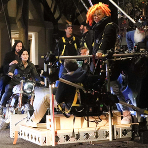 导演拉娜·沃卓斯基(黄发者)正在拍摄《黑客帝国4》的动作戏。