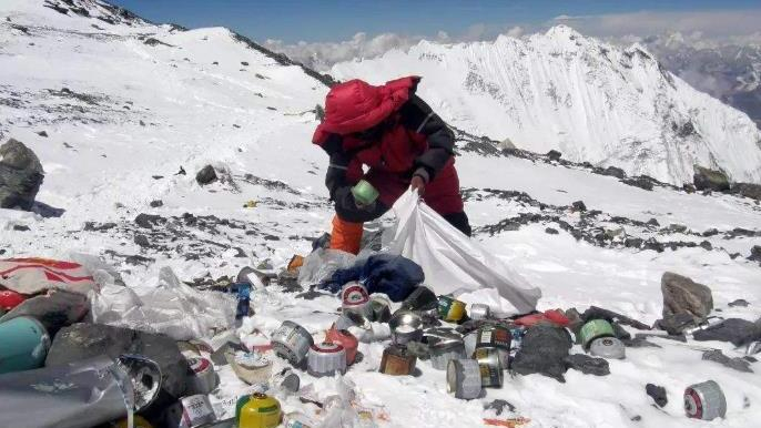 随着登山运动的普及和人类活动的增加,原本生态就十分脆弱的珠峰,环境承载力正逼近极限,垃圾越来越多,诸如食品的包装袋,纸盒子、氧气瓶、登山绳等等都可能成为珠峰上的垃圾。由于海拔和气候等因素,垃圾清理难上加难,7000米以上清运垃圾,只能依靠登山运动员人力搬运。