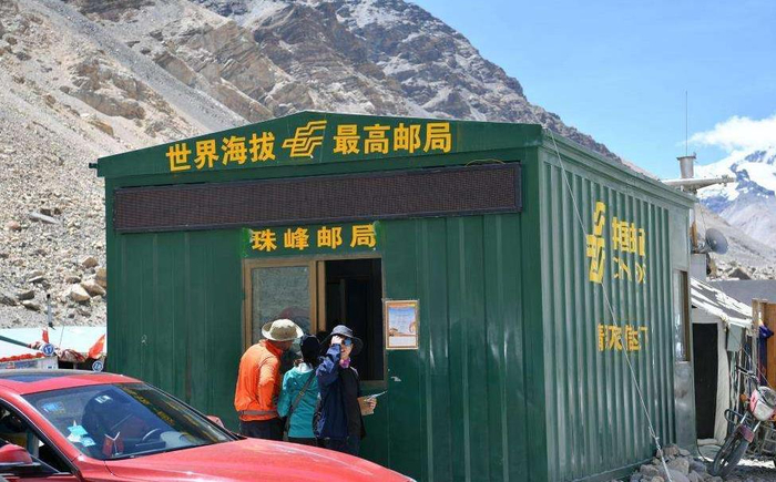 大本营不仅解决食、住问题,还有个我国海拔最高的帐篷邮局,它位于“海拔5200米”纪念碑以南4公里处。这里几乎是每个到达大本营的人必去的地方。
