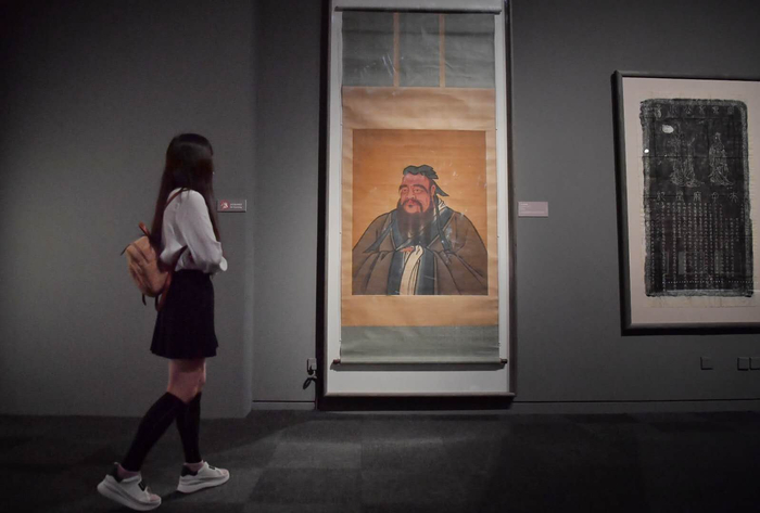 一名观众参观孔子文化展。摄/新京报记者 李木易