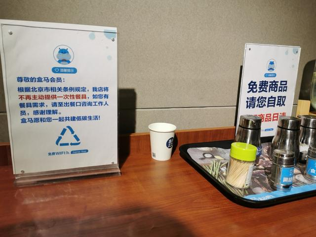 随着越来越多的超市与餐饮业态相结合,一次性餐具也开始在这样的“新零售”门店广泛使用。盒马此前在门店中设有餐具自取区,提供一次性筷子、勺子、餐巾纸等,餐饮档口提供的也几乎都是一次性餐具。随着垃圾分类新规开始实施,盒马的就餐服务会有什么改变?