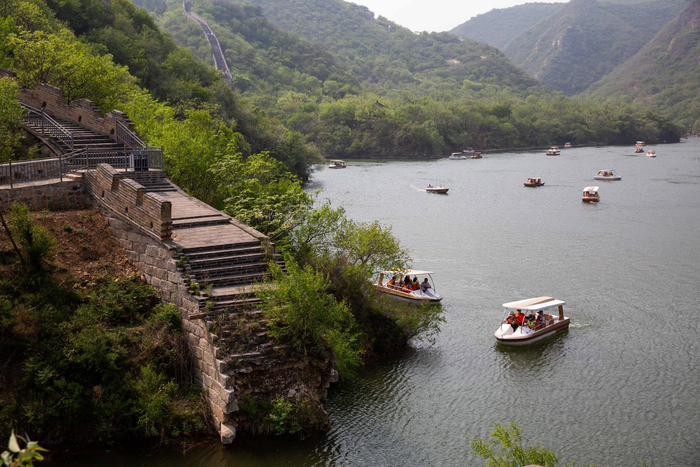 游客进入景区后可自行分散游览。从现场来看,五一期间,水长城景区游客量正在迅速回暖。
