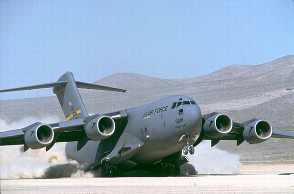 说到野战机场起降能力,C-17数据是载货76吨时起飞跑道需2320米,降落需915米,安-22可是1300米起飞,着陆800米。
