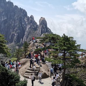 “五一”小长假第二天,黄山风景区天气晴好,景区共接待游客10377人。图为游客在黄山风景区玉屏楼前有序游览观光。姚旭霖 摄