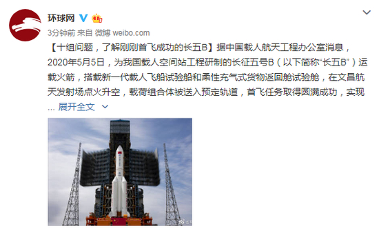 长征五号B运载火箭首飞成功!