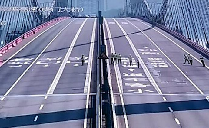 据悉,事发当时虎门大桥正在维修施工中,桥面加了1.2米高的挡墙(水马)作为隔离的临时措施。