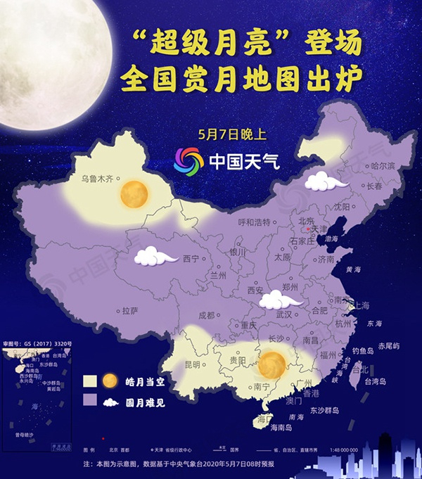 中国天气网5月7日消息,今天晚上(7日),2020年最后一次“超级月亮”将登场。如果天气晴好,我们将欣赏到圆满的大月亮,中国天气网推出“超级月亮”赏月地图,看你家能否看见大月亮。