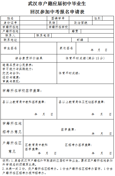 3。武汉市户籍应届初中毕业生回汉参加中考报名申请表