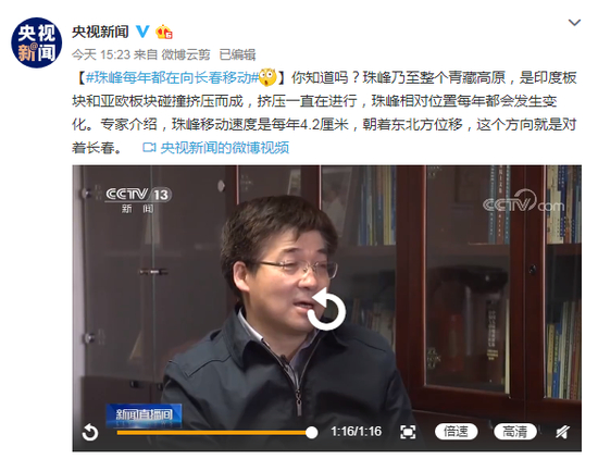 你知道吗?珠峰乃至整个青藏高原,是印度板块和亚欧板块碰撞挤压而成,挤压一直在进行,珠峰相对位置每年都会发生变化。专家介绍,珠峰移动速度是每年4.2厘米,朝着东北方位移,这个方向就是对着长春。