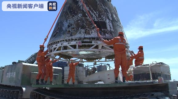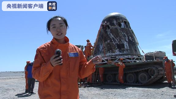 总台央视记者 李晓旭:我们现在看到,新一代载人飞船试验船返回舱正停放在蟒式全地形履带车上,这样的车辆虽然能够更好地适应软沙区、盐碱地等特殊地形,但也有着行驶缓慢的特点,从着陆区到现在这个位置大约距离38公里,转运却用时3个小时。