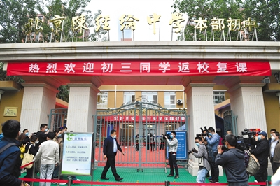明日,北京8万多名初三学生将正式复课。如何开展体育活动?出现突发事件如何进行处理?5月8日,记者对北京市朝阳区陈经纶中学本部初中进行探访。