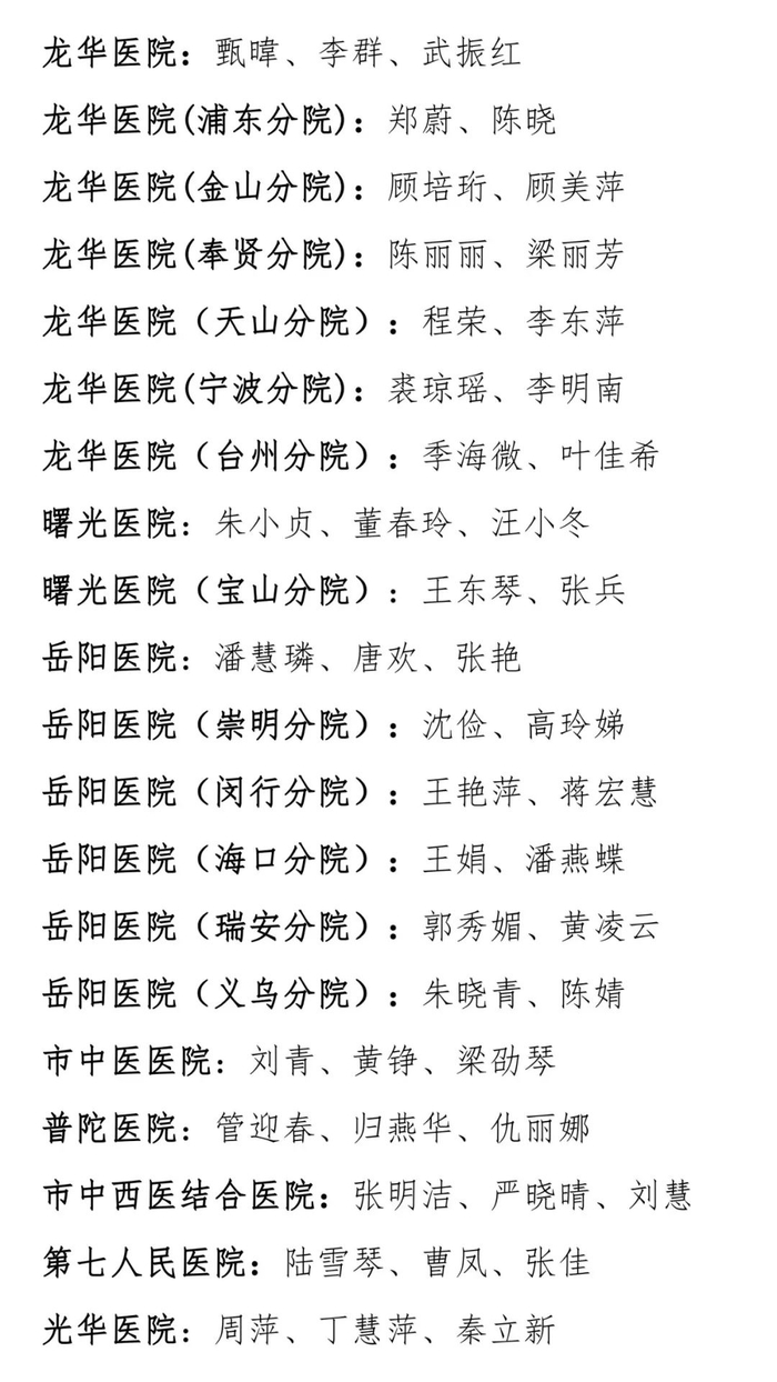 为加强护理队伍建设,提高青年护士职业荣誉感,值此庆祝“5•12”国际护士节之际,大学决定对附属医院“三十年护龄”人员进行表彰,并授予甄暐等人“上海中医药大学附属医院优秀护士长”称号,授予席丽君等人“上海中医药大学附属医院优秀护士长提名”称号。