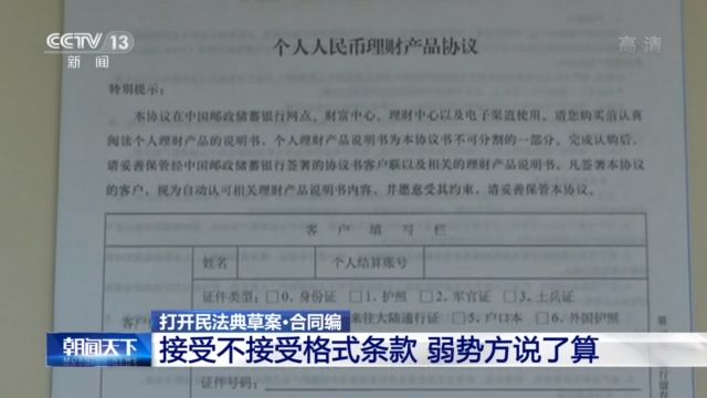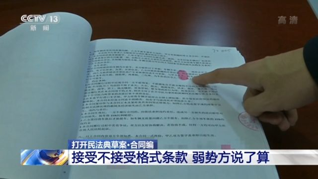 清华大学法学院院长 申卫星:现在是信息超载了,信息量非常大,把重要条款埋在其中了。所以也要求把那些涉及到当事人、对方当事人利益的重要的条款都必须用黑体提示出来,甚至现在也探讨要不要弹框,来确定让当事人能够了解这些重要的条款,那么这些都体现了对格式条款的控制,现在就考虑到选择权留给弱者,所谓的弱者消费者他来决定。