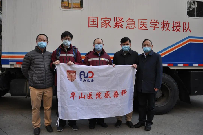 2月4日,复旦大学附属华山医院国家紧急医学救援队出征,张继明(右二)担任队长