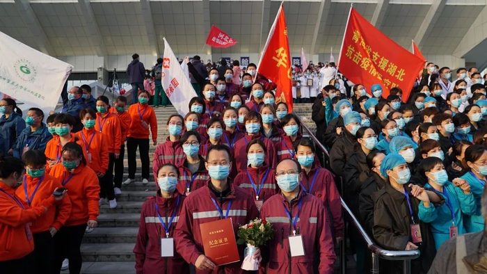在驰援的武昌方舱医院,华山“三纵队”和来自全国各地的其他医疗队共同奋战,实现了病人零病亡、零回头,医护零感染,为提高治愈率、有效降低病亡率交出了一份闪亮的答卷。武昌方舱休舱后,包括张继明在内的26名队员继续转战武汉同济医院光谷院区ICU,和华山医院的战友们会师,收最重的病人,打最硬的仗。