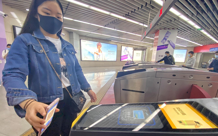 5月16日上午,一名乘客点开APP中的地铁码,准备刷码过闸机进站。摄影/新京报记者 王贵彬