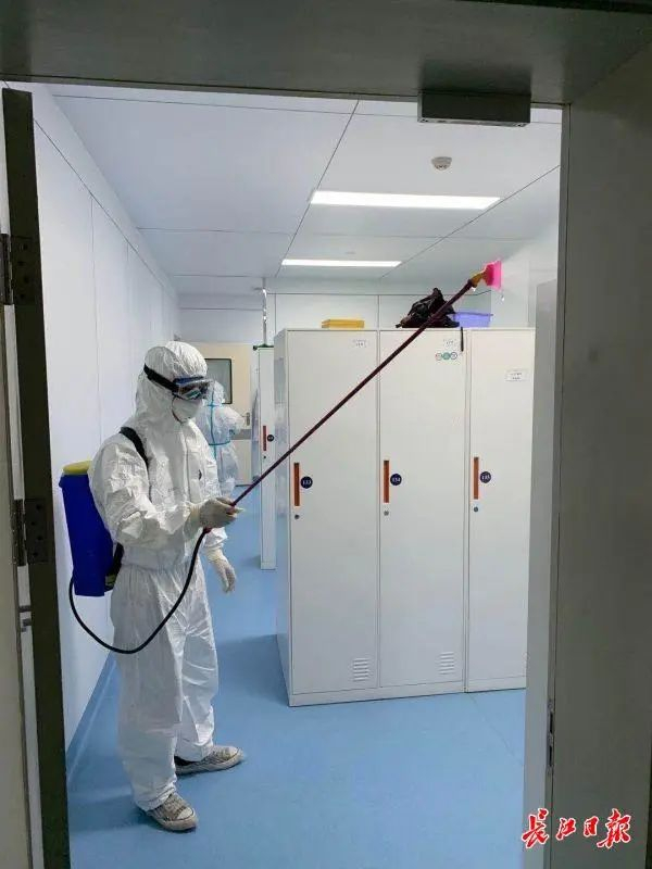 消杀是否彻底关系到患者就医环境和医务人员的工作环境是否安全,所有医院在恢复诊疗前都要经过全面消杀。4月9日,同济医院光谷院区心内科消杀现场,各项工作有条不紊进行。空调风口消毒、空调滤网清洗、空气消毒、卫生间排风扇清洗,仪器仪表擦拭消毒,地面消毒……整个消杀工作进行了三天。