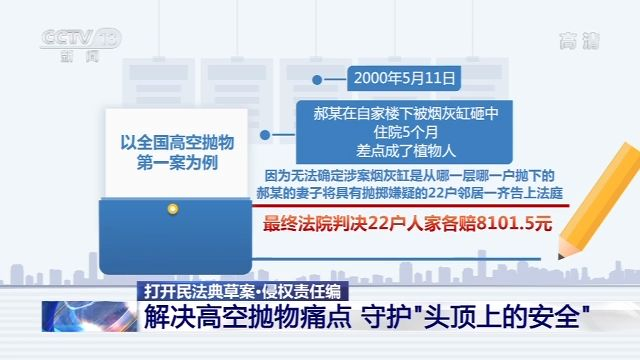 清华大学法学院教授 程啸:我觉得首先解决一个痛点,首先让人们从法律上明白你高空扔东西下来,这个行为是个违法行为。那么首先你要承担法律责任,那么法律要去采取措施去对你进行相应的去制裁。